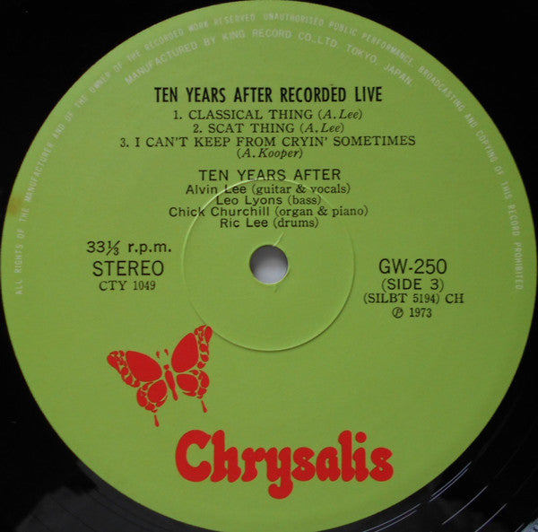 Ten Years After - Recorded Live (2xLP, Album) - Very Good (VG) / Very Good Plus (VG+)