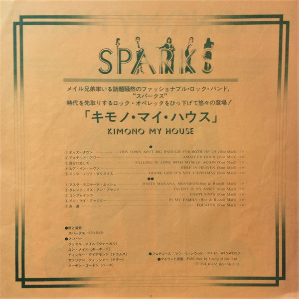 Sparks - Kimono My House = キモノ・マイ・ハウス (LP, Album, Stereo) - Very Good Plus (VG+) / Very Good (VG)