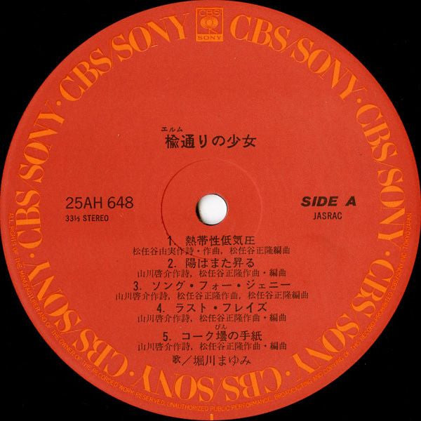 Mayumi Horikawa - 楡通りの少女 (LP, Album, Stereo) - Near Mint (NM or M-) / Very Good Plus (VG+)