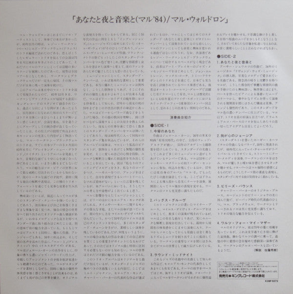 Mal Waldron - You And The Night And The Music (Mal '84) (LP, Album, Stereo) - Near Mint (NM or M-) / Very Good Plus (VG+)