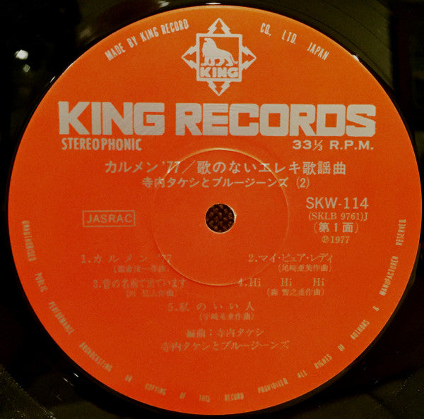 Takeshi Terauchi & Blue Jeans - カルメン'77/歌のないエレキ歌謡曲 (2xLP) - Near Mint (NM or M-) / Very Good Plus (VG+)