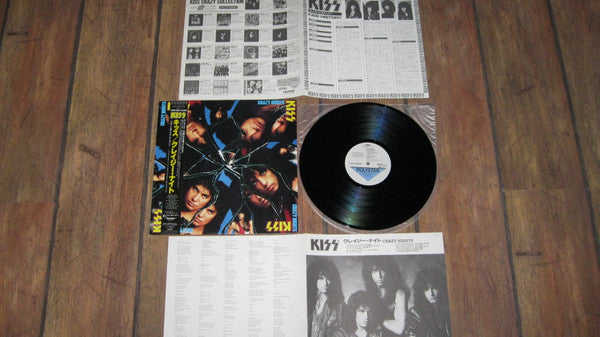 Comes with obi and two 4-page inserts, one with liner notes, a monochrome group photo, and the English and Japanese lyrics, credits, etc. and another with "Kiss History" and discography to date only in Japanese. Also comes with a "Kiss Crazy" postcard.