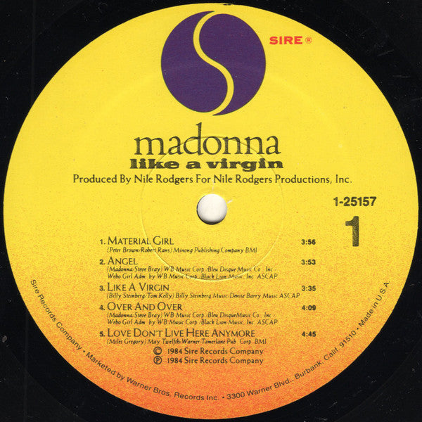 Specialty pressing sourced from Allied metal parts with label variation of Sire® at top right of logo, rather than Sire™ under the logo as seen on [r=4289408].This release of the album doesn't contain "Into The Groove," which is featured as track B1 on other international releases.