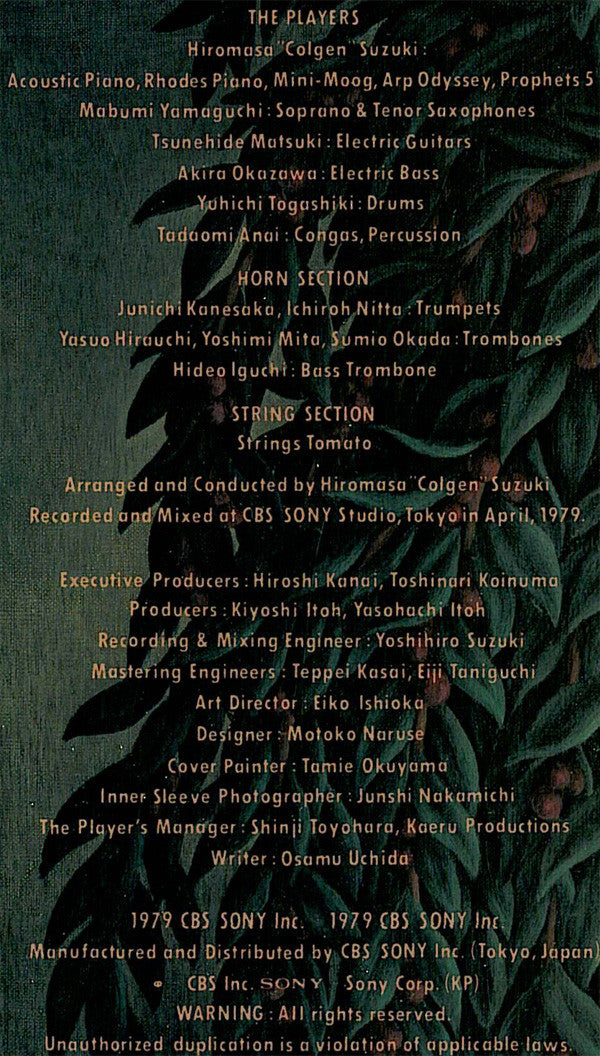 Recorded and Mixed at CBS SONY Studio, Tokyo in April, 1979.Barcode and Other Identifiers