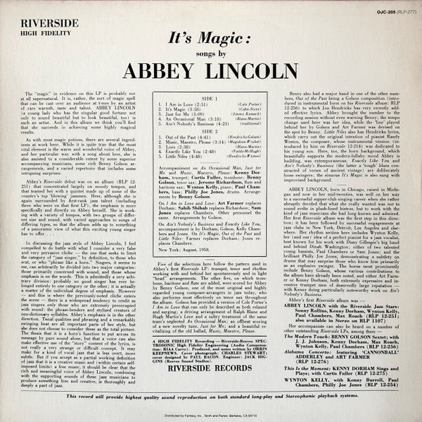 Abbey Lincoln - It's Magic (LP, Album, Reissue, Mono) - Very Good Plus (VG+) / Very Good Plus (VG+)