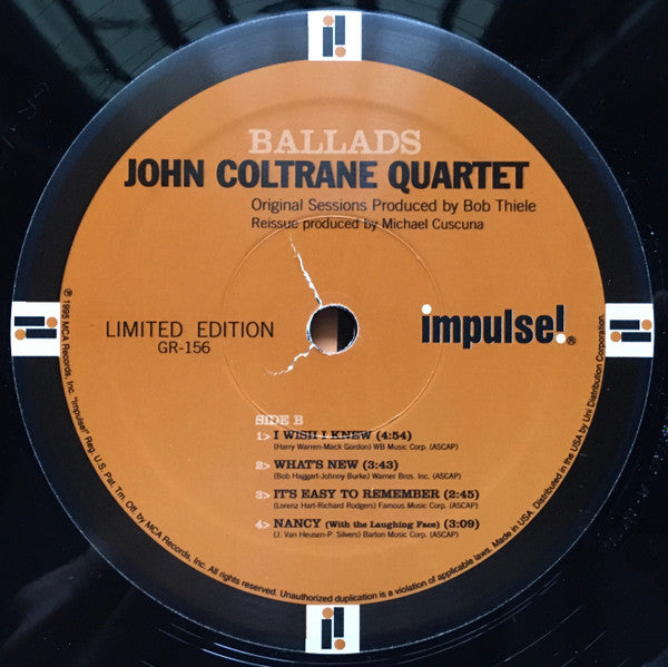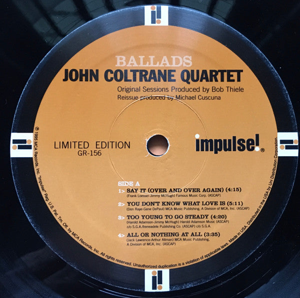The John Coltrane Quartet - Ballads (LP, Album, Limited Edition, Reissue, Remastered, Stereo) - Near Mint (NM or M-) / Very Good Plus (VG+)