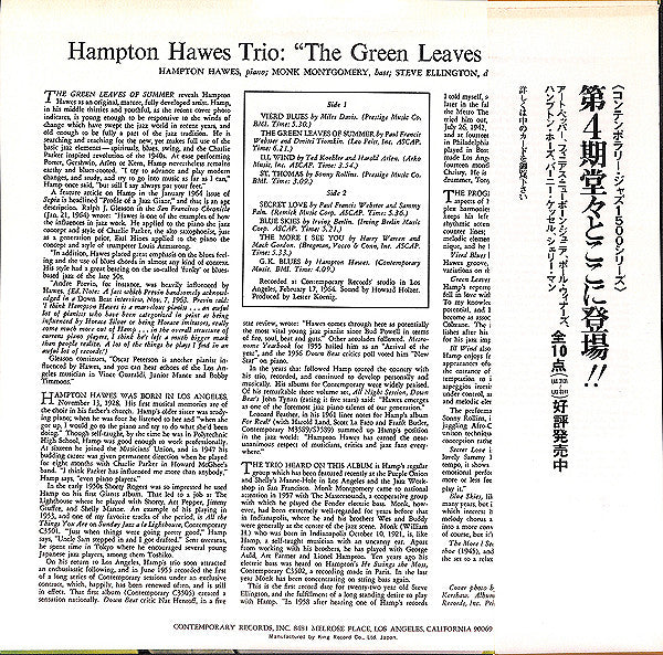 | Artist | Hampton Hawes Trio |