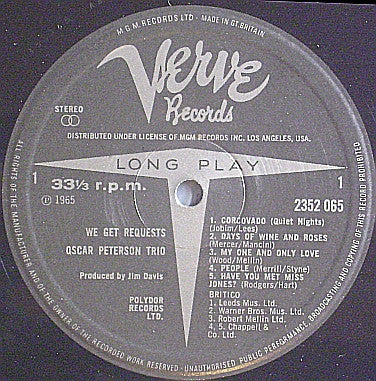 Verve is a trade mark of M.G.M. Records Inc. Los Angeles U.S.A.