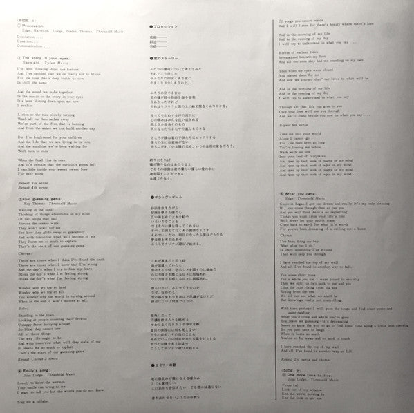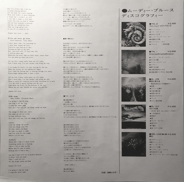 Including a 4 page sleeve size insert titled "The Moody Blues Fan Club Japan." Includes tracks,Japanese/Americans lyrics and other Moody Blues albums available.