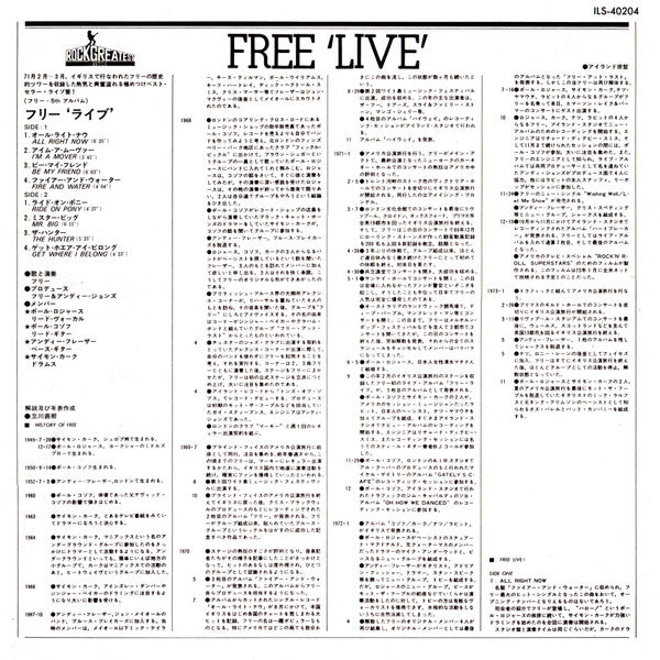 ℗&©1971 Island records Ltd.On Side One All Right Now was recorded live at Sunderland. I'm A Mover, Be My Friend, Fire And Water live at Croydon. On Side Two Ride On Pony, Mr Big were recorded live at Croydon, The Hunter was recorded live at Sunderland. Get Where I Belong is an Island Studio recording (March 1971).