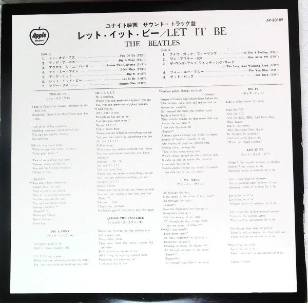 "The Beatles Forever" reissue with ¥ 2,000 price on the back cover and obi (probably released in 1971 or 1972).Comes with "The Beatles Forever" obi, an insert with English lyrics, and a black inner sleeve.