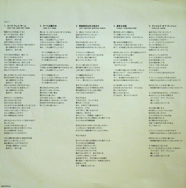 Without Obi. With inserts. Jacket has some creases, stains, ringwear. Inserts have creases, foxing stains. Vinyl has some scuffing.