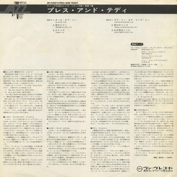 The Lester Young-Teddy Wilson Quartet - Pres And Teddy (LP, Album, Mono) - Very Good (VG) / Very Good Plus (VG+)