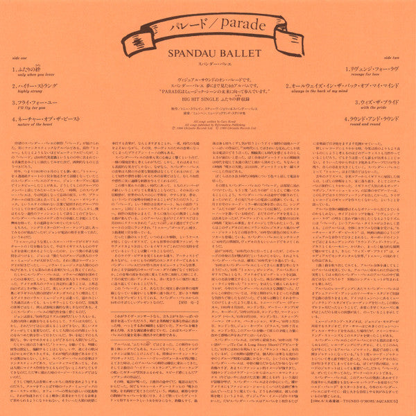 Spandau Ballet - Parade (LP, Album, Stereo) - Very Good Plus (VG+) / Good Plus (G+)