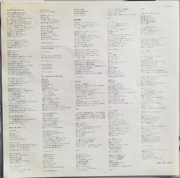 Includes OBI and 2 inserts with info and lyrics in japanese and english.Tracks A1, A3, A4, B1, B4 to B6 published by MCA Records, Inc. (ASCAP - ℗ 1985)