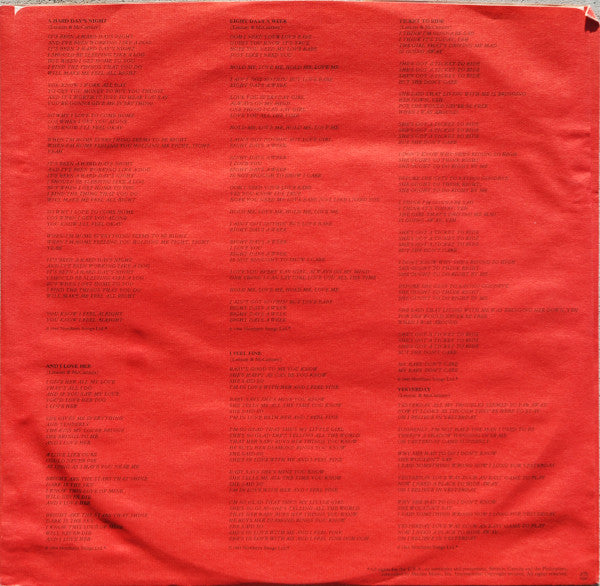 Red lyric inner sleeves with black text.Red Inner sleeve original copyrights and publishers:
