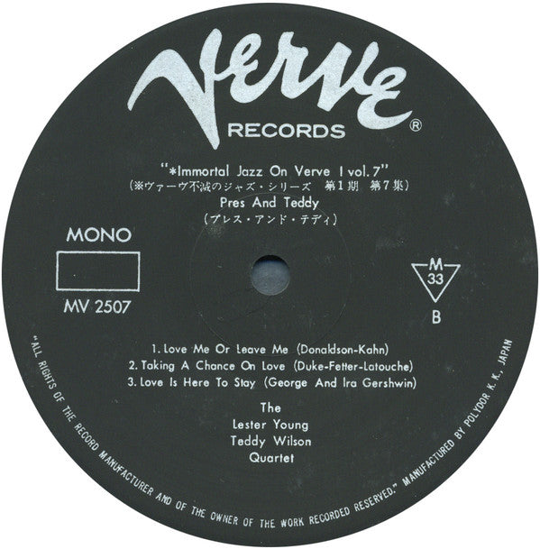The Lester Young-Teddy Wilson Quartet - Pres And Teddy (LP, Album, Mono) - Very Good Plus (VG+) / Very Good Plus (VG+)