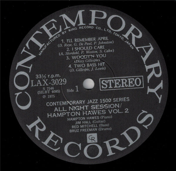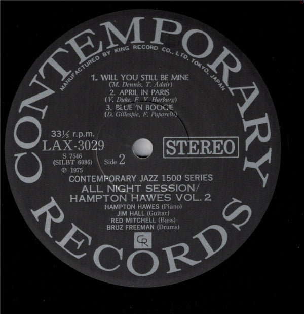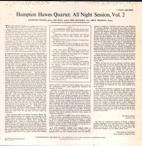 Hampton Hawes Quartet - All Night Session, Vol. 2 (LP, Album, Limited Edition, Reissue, Stereo) - Very Good Plus (VG+) / Very Good Plus (VG+)