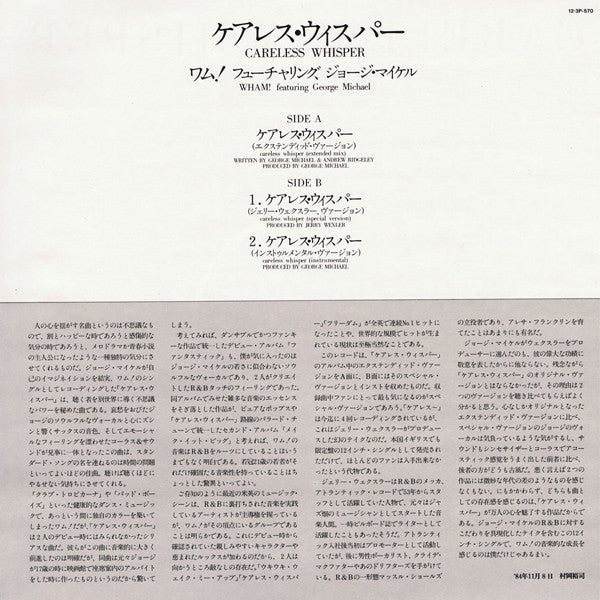 Wham! - Careless Whisper (12", 45 RPM) - Very Good Plus (VG+) / Very Good (VG)