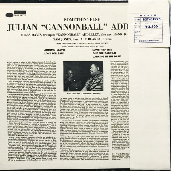 Cannonball Adderley - Somethin' Else = サムシン・エルス (LP, Album, Reissue, Stereo) - Very Good Plus (VG+) / Good Plus (G+)