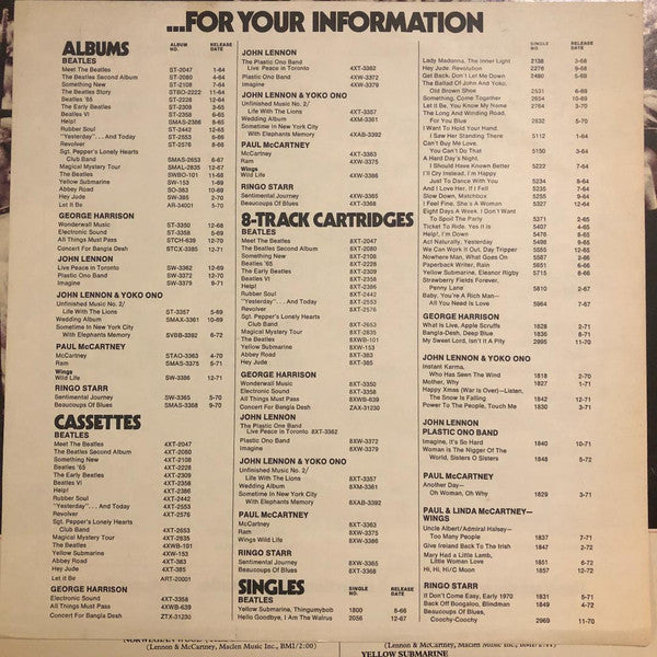 Capitol, Jacksonville pressing, as identified by a "0" in the run-outs.Came with white insert track sheet for both 62-66 and 67-70 albums with "for your information" discography of US Beatles and solo released up to spring 1973.