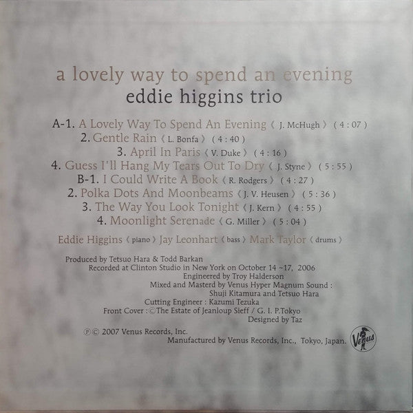 The Eddie Higgins Trio - A Lovely Way To Spend An Evening (LP, Album) - Very Good Plus (VG+) / Near Mint (NM or M-)