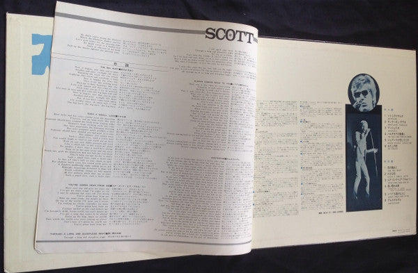 Japanese title of release on obi, back of sleeve and inside gatefold: スコット・ウォーカーアルバム = Scott Walker Album