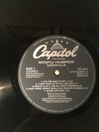 Richard Thompson - Mirror Blue (LP, Album) - Very Good Plus (VG+) / Very Good Plus (VG+)