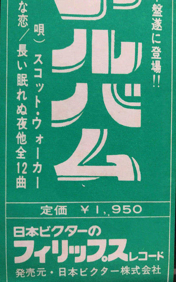 Japanese title of release on obi, back of sleeve and inside gatefold: スコット・ウォーカーアルバム = Scott Walker Album