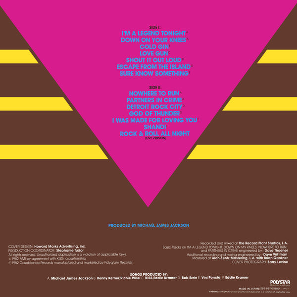 Limited Edition initial first pressing. Comes with an obi strip indicating it has limited edition extras 1. Vinyl "Beach Bag", 2. silver metallic sticker 3. pin-up/poster, and the usual liner notes/lyrics insert sheet.℗1982 Casablanca Records