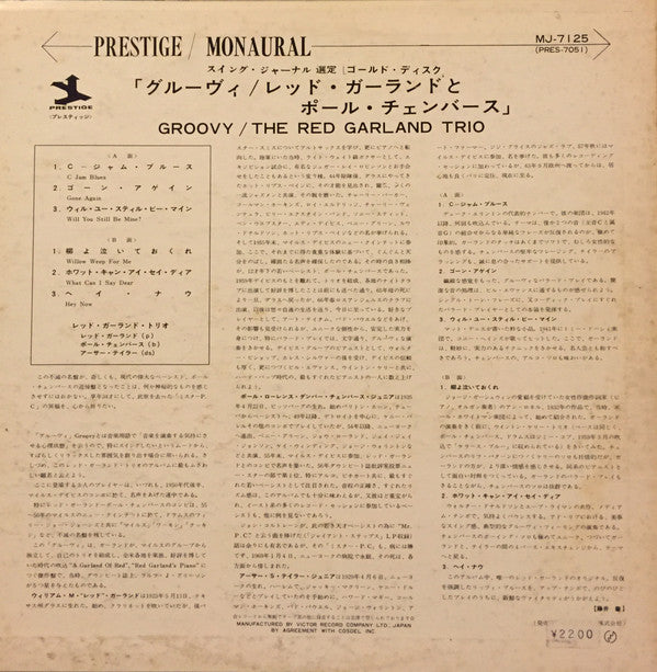 The Red Garland Trio - Groovy (LP, Album, Mono) - Very Good (VG) / Fair (F)