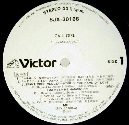 Mie (2) - Call Girl "From Mie To You" (LP, Album, Promo) - Near Mint (NM or M-) / Very Good Plus (VG+)
