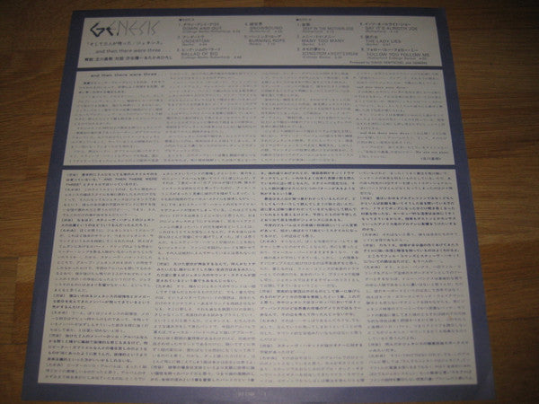 Japanese 2nd issue in gatefold cover with obi & Japanese lyric/text insert.The only difference to the 1st press is that also "...and then there were three" is pictured on the back of the obi.