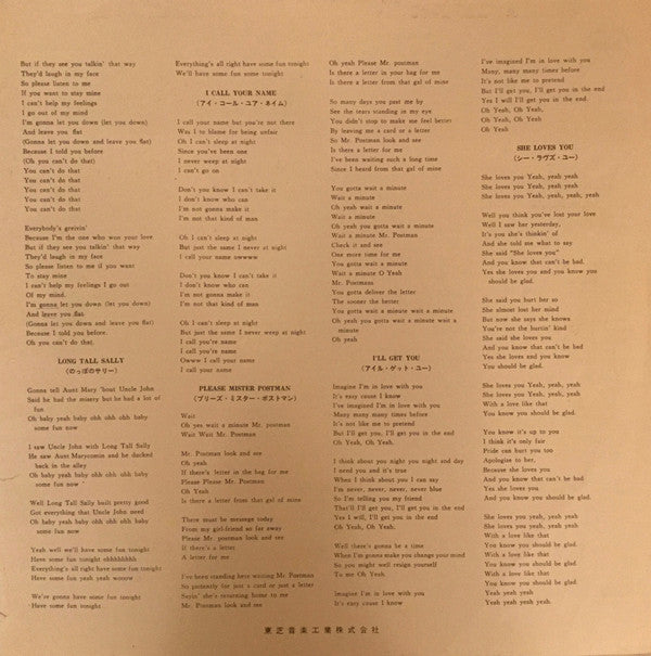 "Mfd. by Toshiba Musical Industries Ltd. Japan", text on bottom of labels.