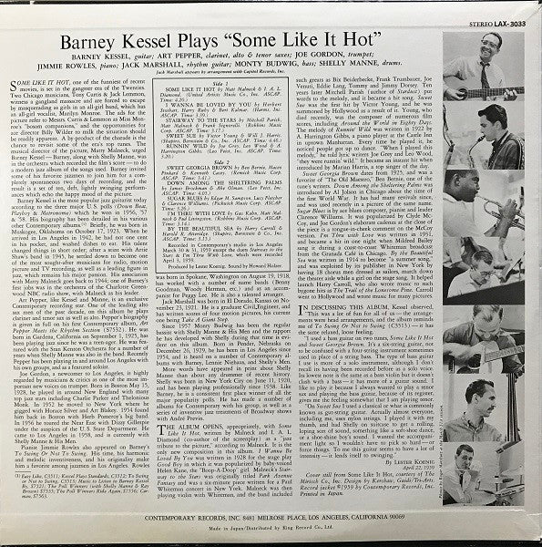 Barney Kessel - Some Like It Hot (LP, Album, Limited Edition, Reissue, Stereo) - Good Plus (G+) / Very Good (VG)