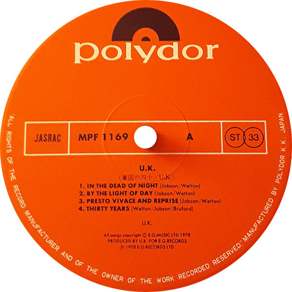 UK (3) - U.K. (LP, Album, Stereo) - Near Mint (NM or M-) / Near Mint (NM or M-)