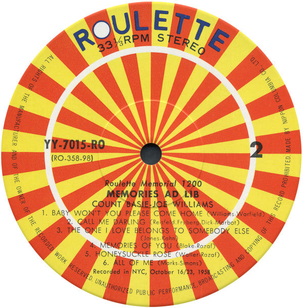 Joe Williams - Memories Ad-Lib (LP, Album, Limited Edition, Reissue, Stereo) - Very Good Plus (VG+) / Very Good (VG)