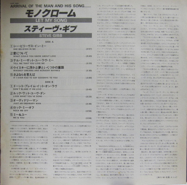 Steve Gibb - Let My Song = モノクローム (LP, Album, Promo) - Very Good Plus (VG+) / Very Good Plus (VG+)