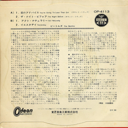 The Beatles - You're Going To Lose That Girl (7", 33 ⅓ RPM) - Good Plus (G+) / Very Good Plus (VG+)