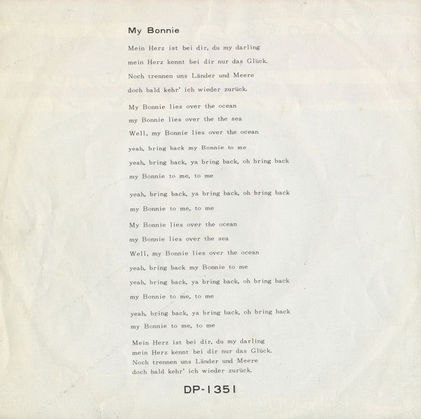 "My Bonnie" is misspelt on the sleeve as "My Bonie".Barcode and Other Identifiers