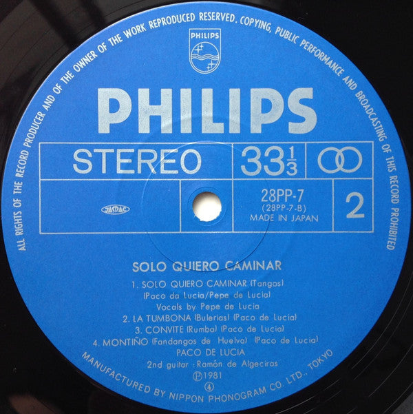 Paco De Lucía - Solo Quiero Caminar = 道 (Vinyl, LP, Album, Stereo) Very Good (VG) / Very Good Plus (VG+)