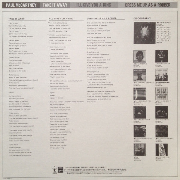 Paul McCartney - Take It Away (12", 45 RPM, Single, Stereo) - Very Good Plus (VG+) / Very Good Plus (VG+)