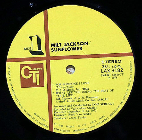 Milt Jackson - Sunflower (LP, Album, Limited Edition, Reissue) - Very Good (VG) / Very Good Plus (VG+)