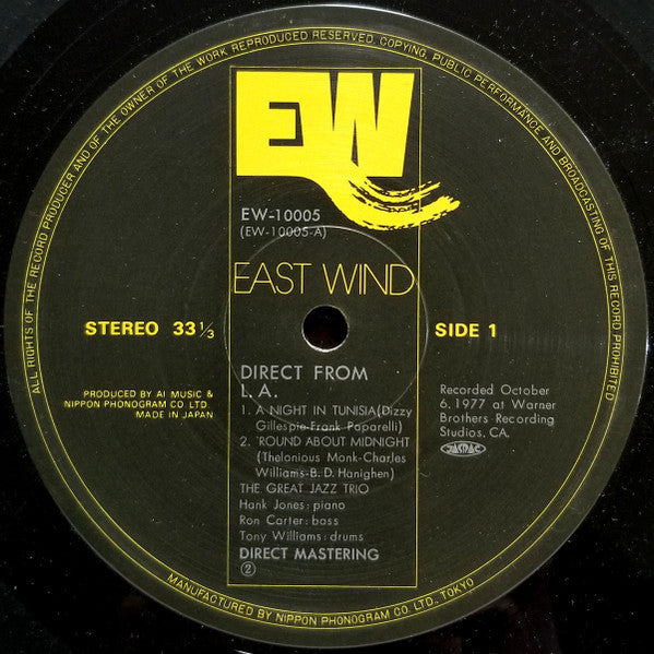 The Great Jazz Trio - The Great Jazz Trio Direct From L.A. (LP, Album, Stereo) - Very Good (VG) / Very Good Plus (VG+)