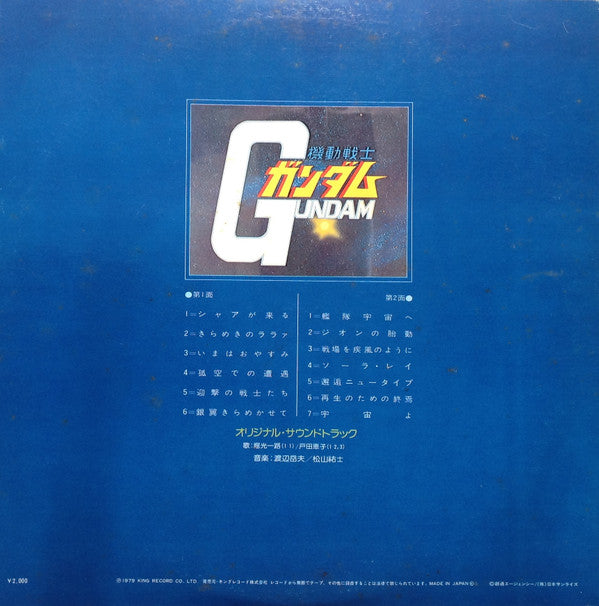 Soundtrack to the 1979 Mobile Suit Gundam TV anime series.Gatefold sleeve with obi and glued-in insert.