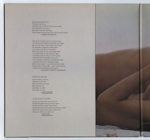 “Grow Old With Me” and “Let Me Count The Ways” are from original cassette recordings by John and Yoko.