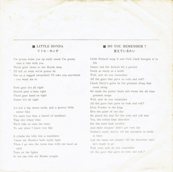The Beach Boys - リトル・ホンダ = Little Honda (7", 45 RPM, Single, Mono) - Good Plus (G+) / Very Good (VG)