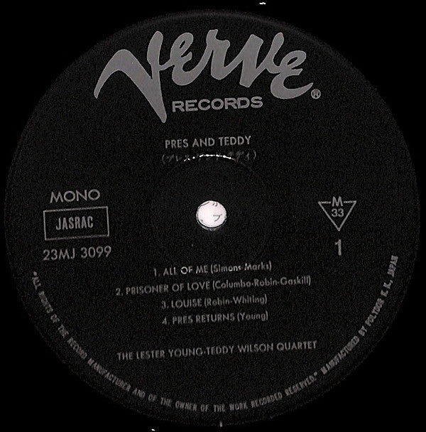 The Lester Young-Teddy Wilson Quartet - Pres And Teddy (LP, Album, Reissue, Mono) - Very Good (VG) / Very Good Plus (VG+)