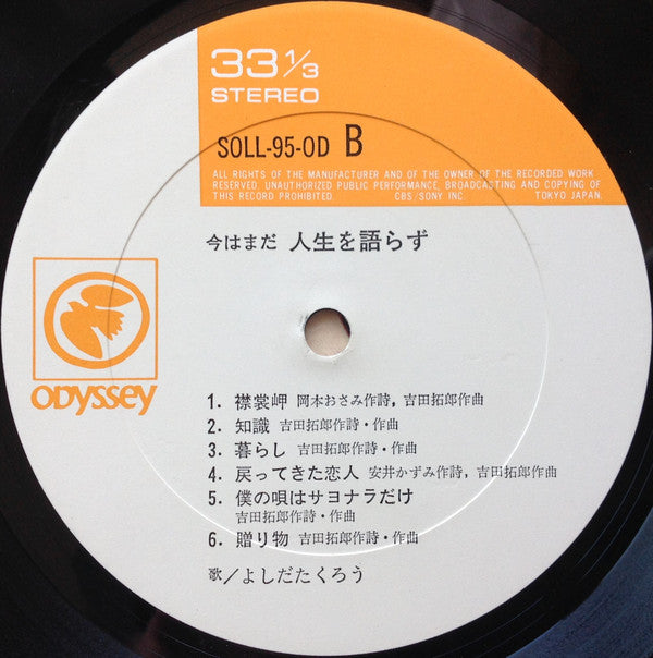 Takuro Yoshida - 今はまだ人生を語らず (LP) - Very Good Plus (VG+) / Very Good (VG)