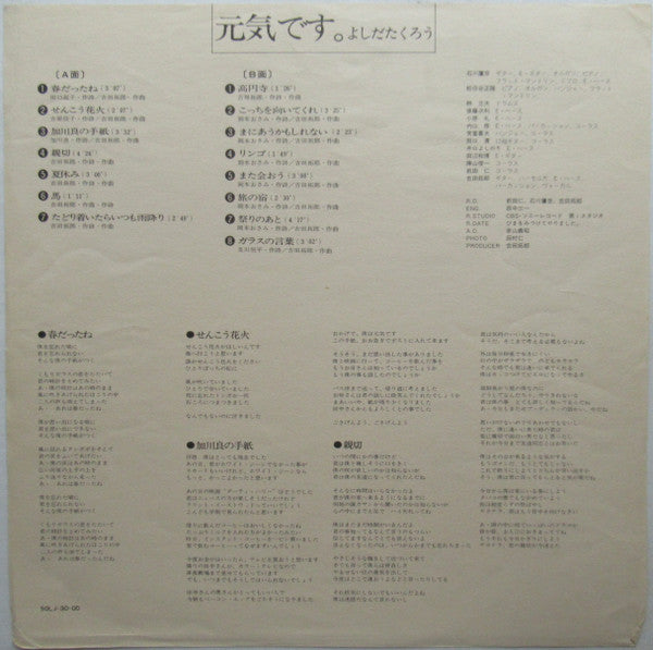 Takuro Yoshida - 元気です。 (LP, Album) - Very Good (VG) / Very Good Plus (VG+)